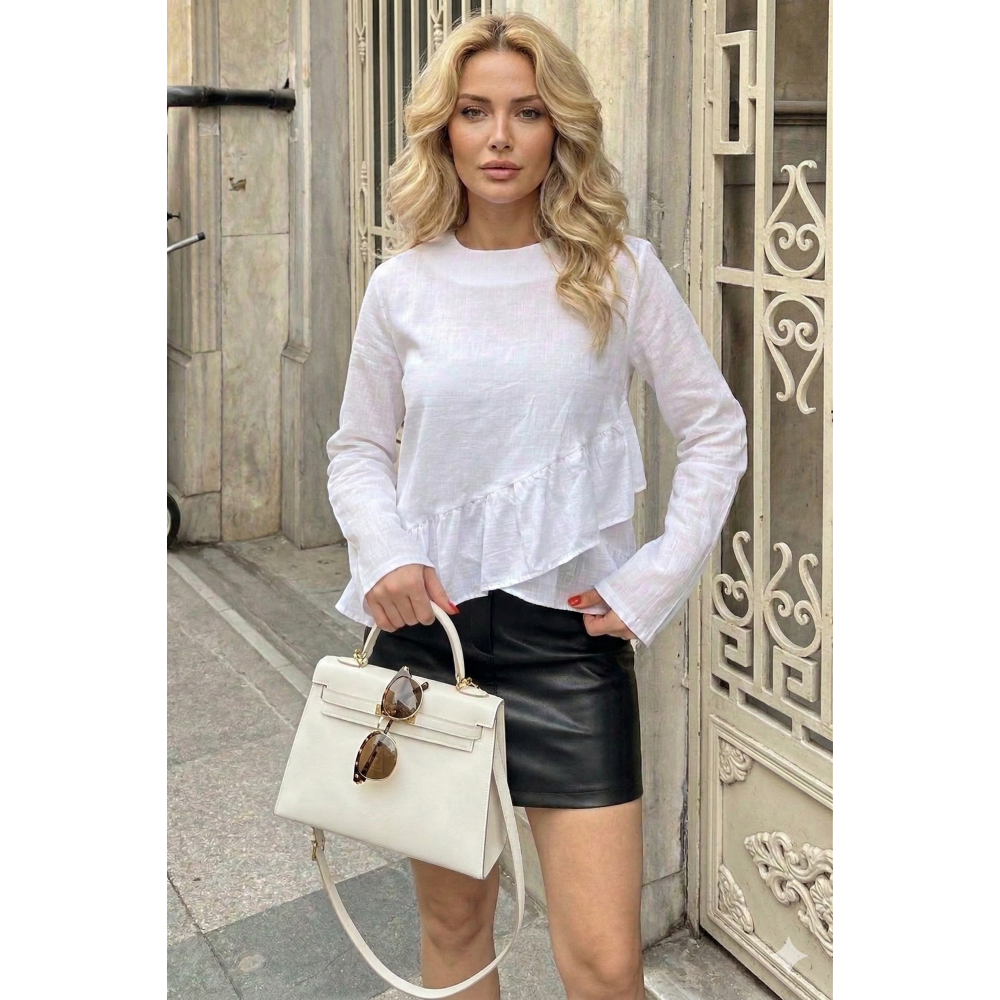 Pasaklı Giyim Fırfırlı Beyaz Keten Bluz: Çabasız Şıklığın Saf Hali